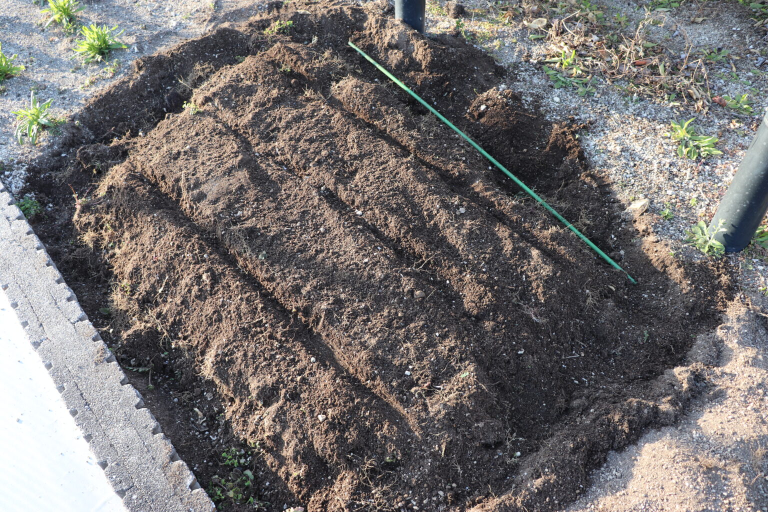 先日植えたじゃが芋(キタアカリ)が発芽してました