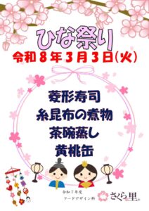本日は行事食「ひな祭り御膳」を提...