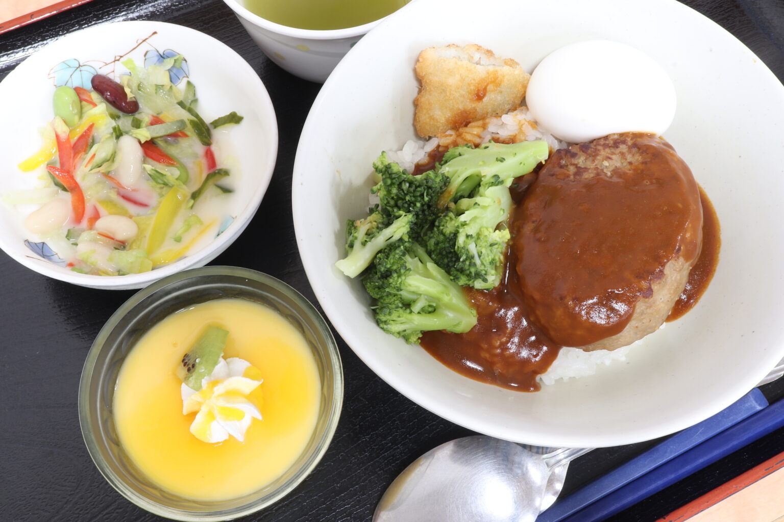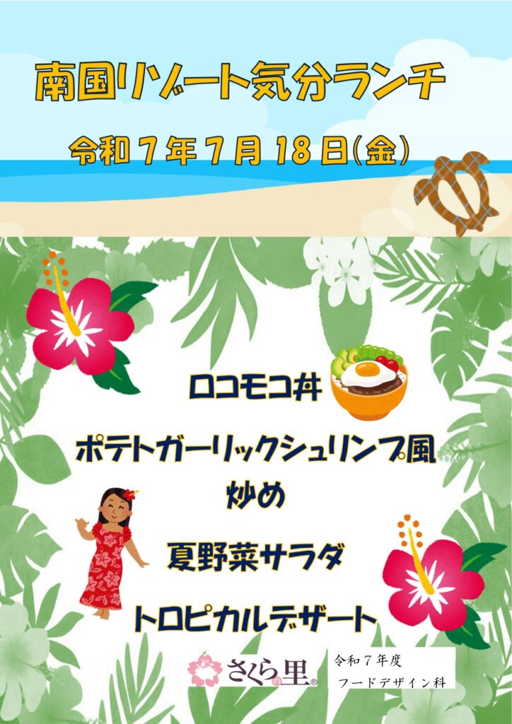本日は行事食「南国リゾート気分ランチ」を提供させていただきました。参加いただきました皆様、ありがとうございました!(メニューはロコモコ丼、ポテトガーリックシュリンプ風炒め、夏野菜サラダ、トロピカルデザートでした!)
