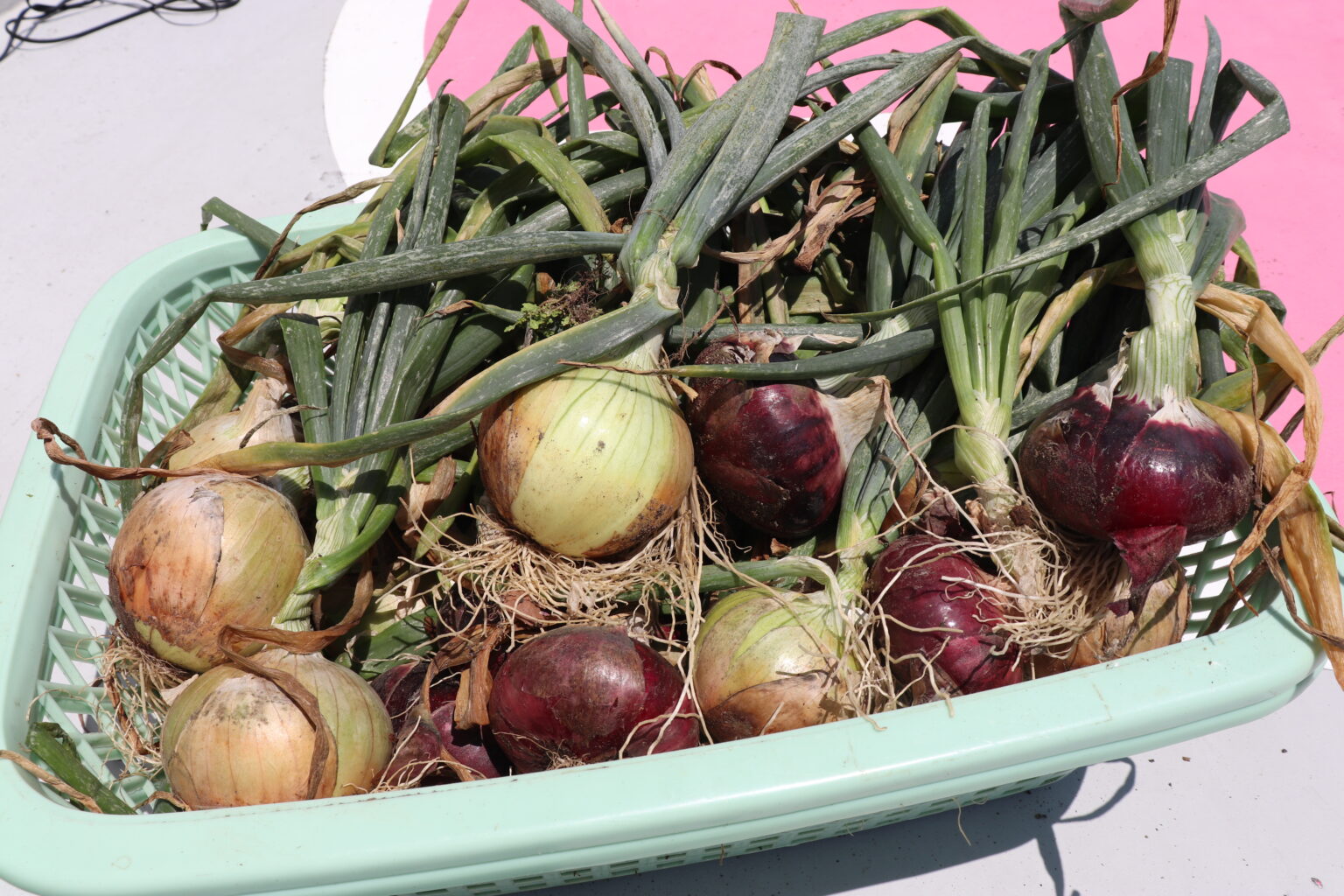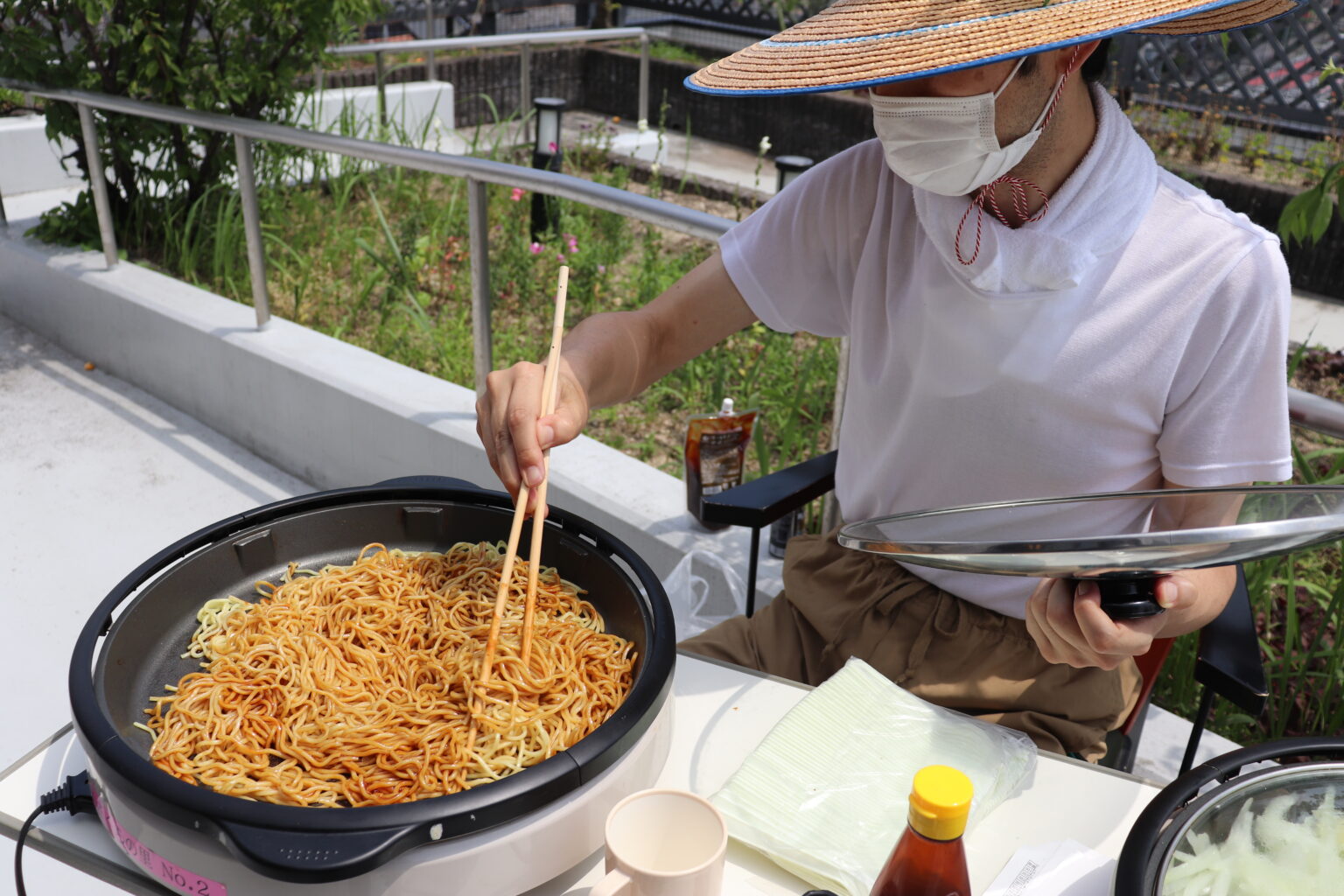 屋上の野菜を利用者様と一緒に収穫し、美味しく調理して一緒にいただきました!(今回は玉ねぎを収穫していただき、焼きそばの具材として使用しました!)