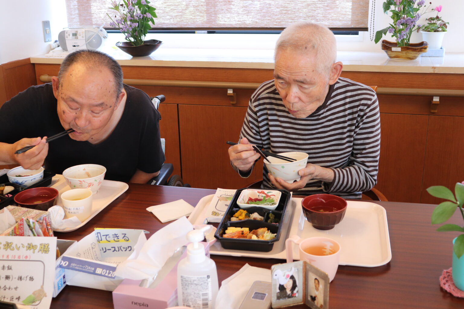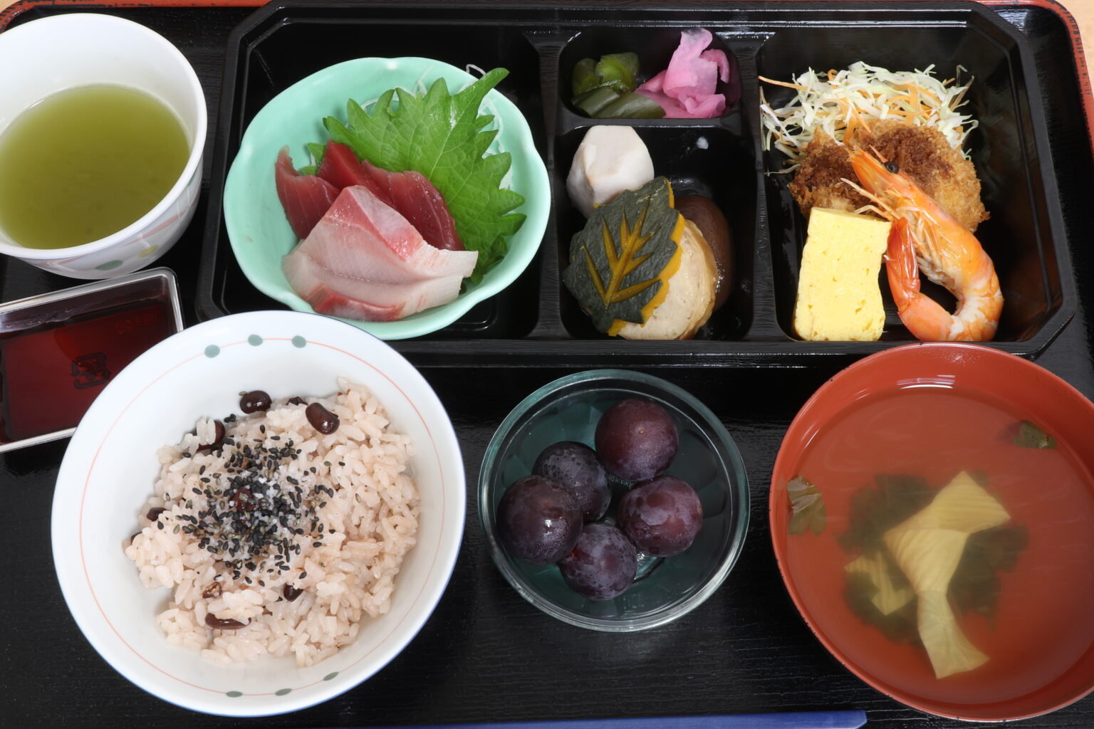 本日は行事食「敬老お祝い御膳」を提供させていただきました。参加いただきました皆様、ありがとうございました!(メニューは赤飯、お造り(鮪・鰤)、有頭海老、炊き合わせ、清まし汁、巨峰でした!)