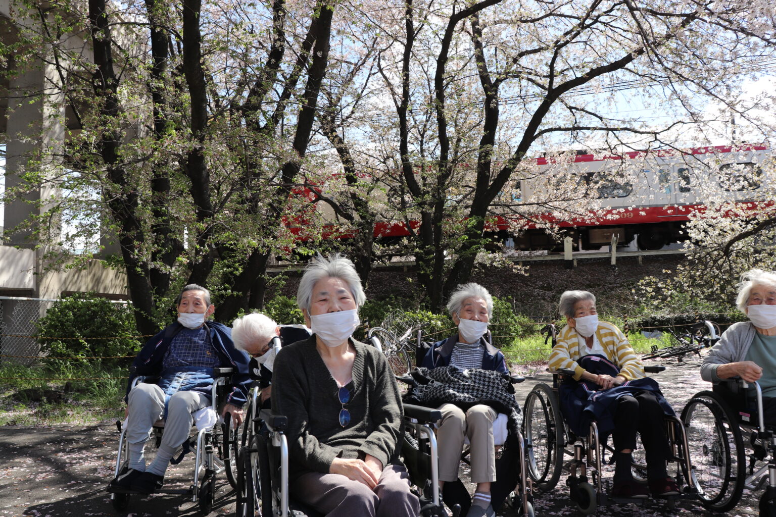 本日5Fの利用者様と一緒に中岡崎駅へお花見に行きました!ご協力いただきました皆様、参加いただきました皆様、ありがとうございました!(丁度電車が通過する場面を撮影することができました!)