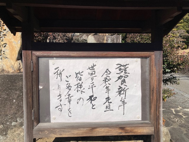 掲示板には「世界平和と皆様のご多幸を祈ります」とお言葉がありました。