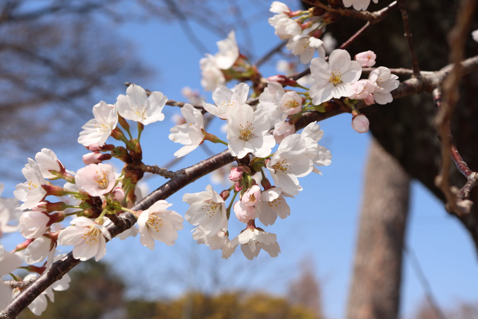 今日ふらっと岡崎城公園を散策してみましたところ、染井吉野が開花しているようでした。ついに桜シーズン到来です!