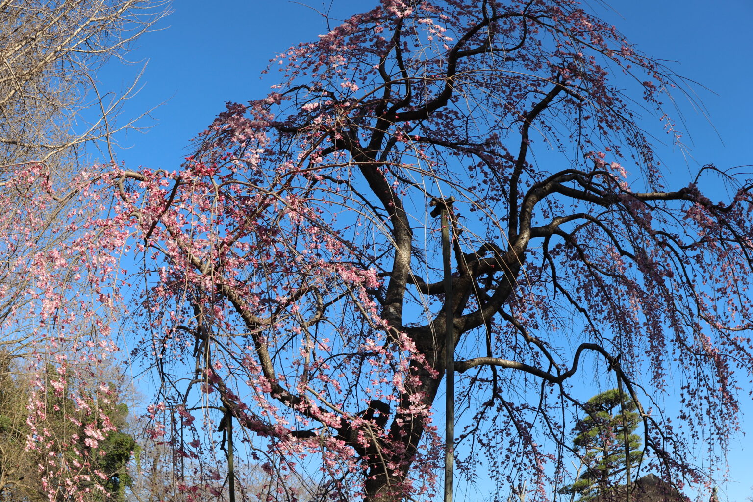 公園内にある神代(じんだい)桜は満開でした