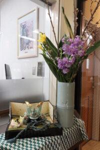施設近くにある竜美丘会館近くに咲...